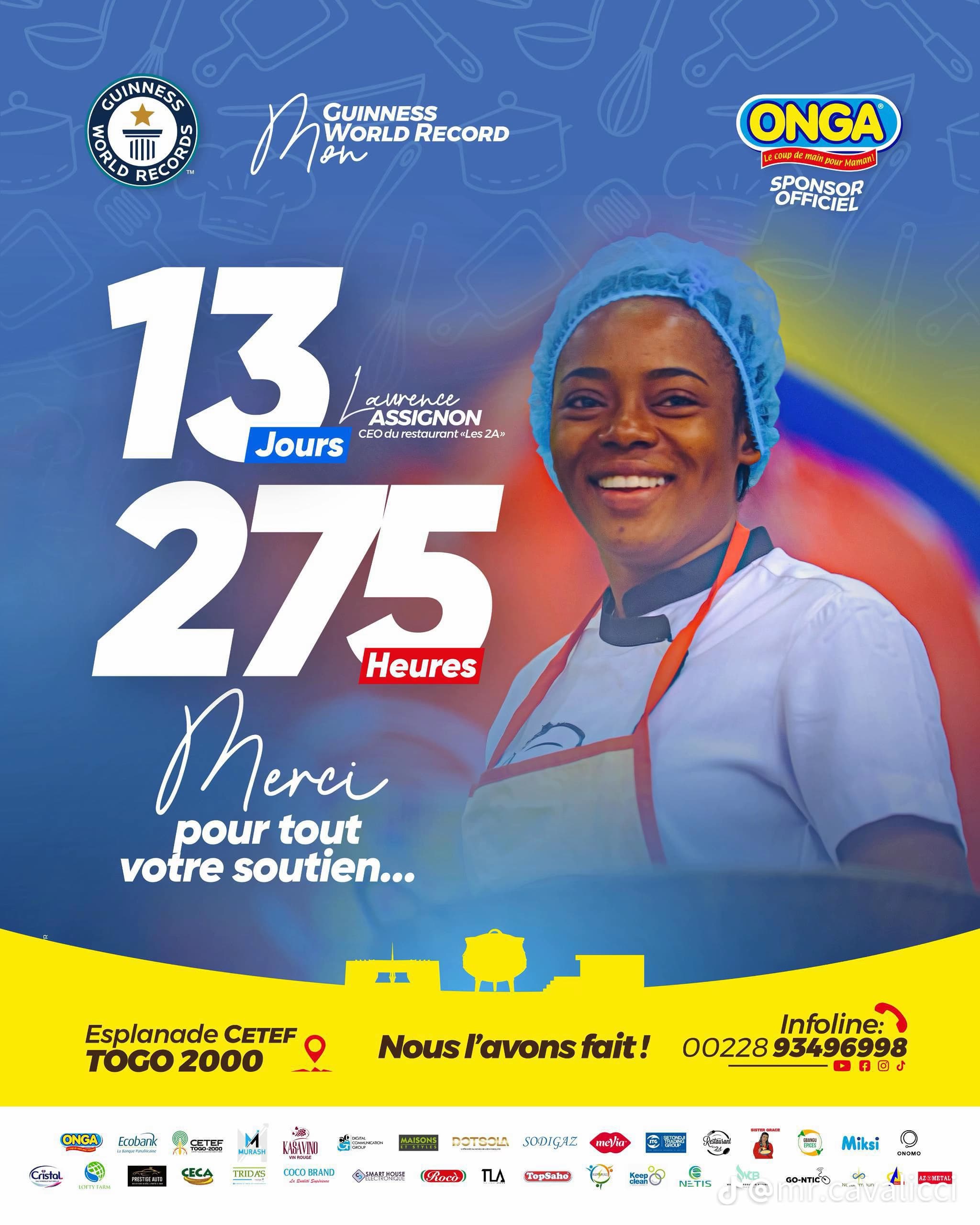 Pour Laurence Assignon, participer à cette aventure est un accomplissement personnel de faire valoir la cuisine du futur. Elle a ainsi remercié la population togolaise pour soutien à lui apporter au cours de ce marathon.