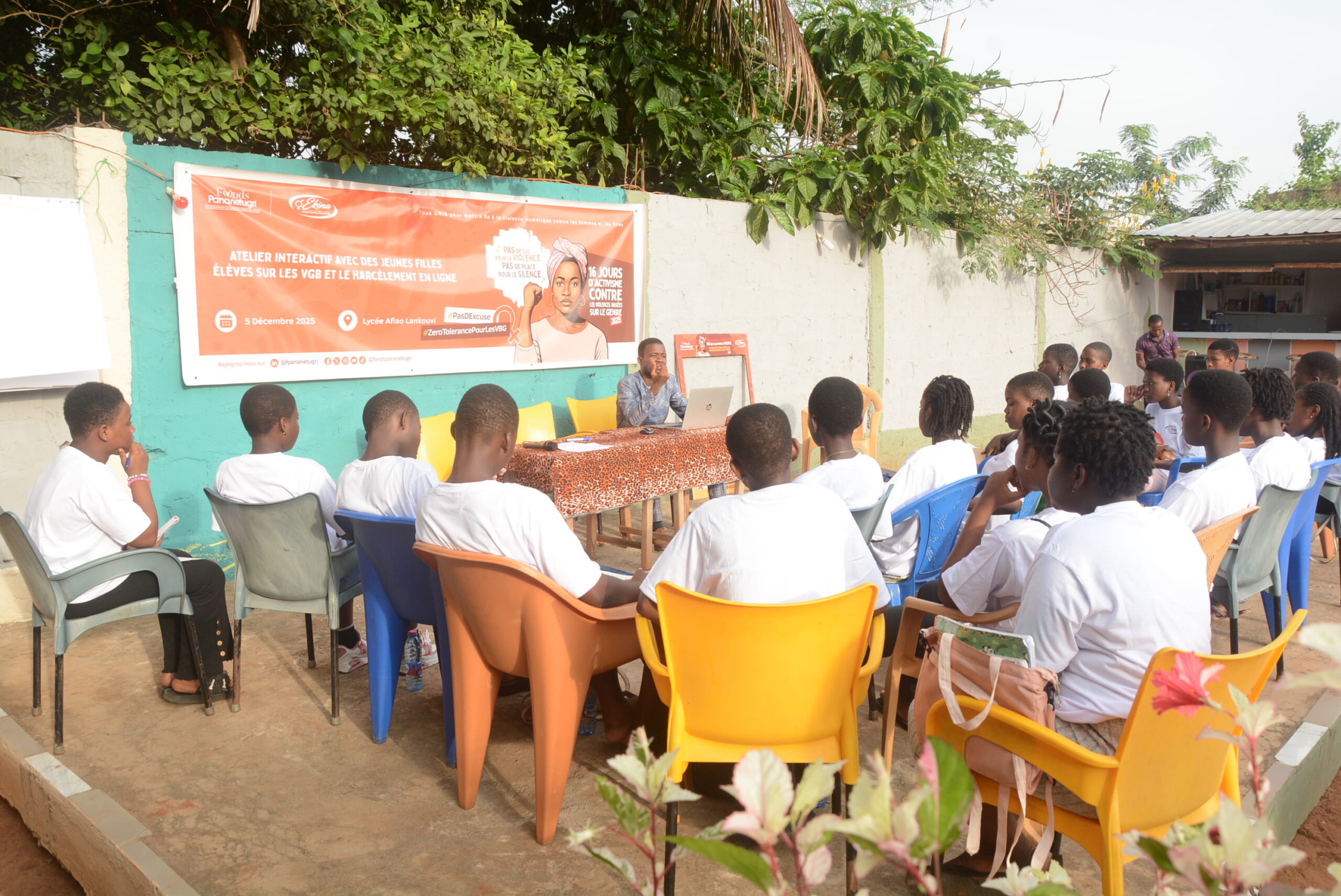 Une vingtaine de jeunes filles du lycée Aflao Lankouvi et de l’école privée » Fondation la Bonne Semence », situés dans la banlieue nord-ouest de Lomé, ont pris part vendredi 5 décembre 2025 à un atelier interactif de sensibilisation sur les violences basées sur le genre (VBG) et le harcèlement en ligne. Organisé par l’association féministe Ekina, avec l’appui du Fonds Pananetugri, cette initiative s’inscrit dans la campagne internationale des 16 jours d’activisme contre les violences faites aux femmes et aux filles, célébrée chaque année du 25 novembre au 10 décembre.