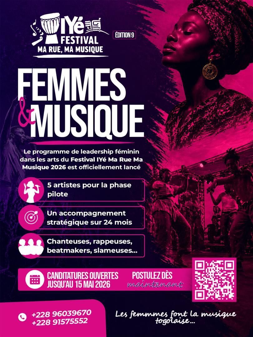 Ouvert aux chanteuses, rappeuses, slameuses, beatmakers et autres performeuses, cet appel à candidature s’adresse aux artistes résidant au Togo, désireuses de franchir un cap dans leur carrière. À la clé, un accompagnement professionnel complet destiné à renforcer leur visibilité et leur positionnement artistique.